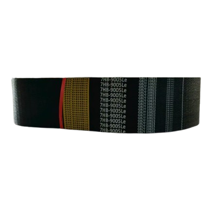 A correia trapezoidal revestida RUINIU Brand 7HB9005Le, com etiqueta vermelha, utiliza corda de aramida de alta qualidade e borracha de cloropreno, oferecendo boa estabilidade de funcionamento, resistência à flexão, alta capacidade de carga e melhor resistência ao desgaste.
